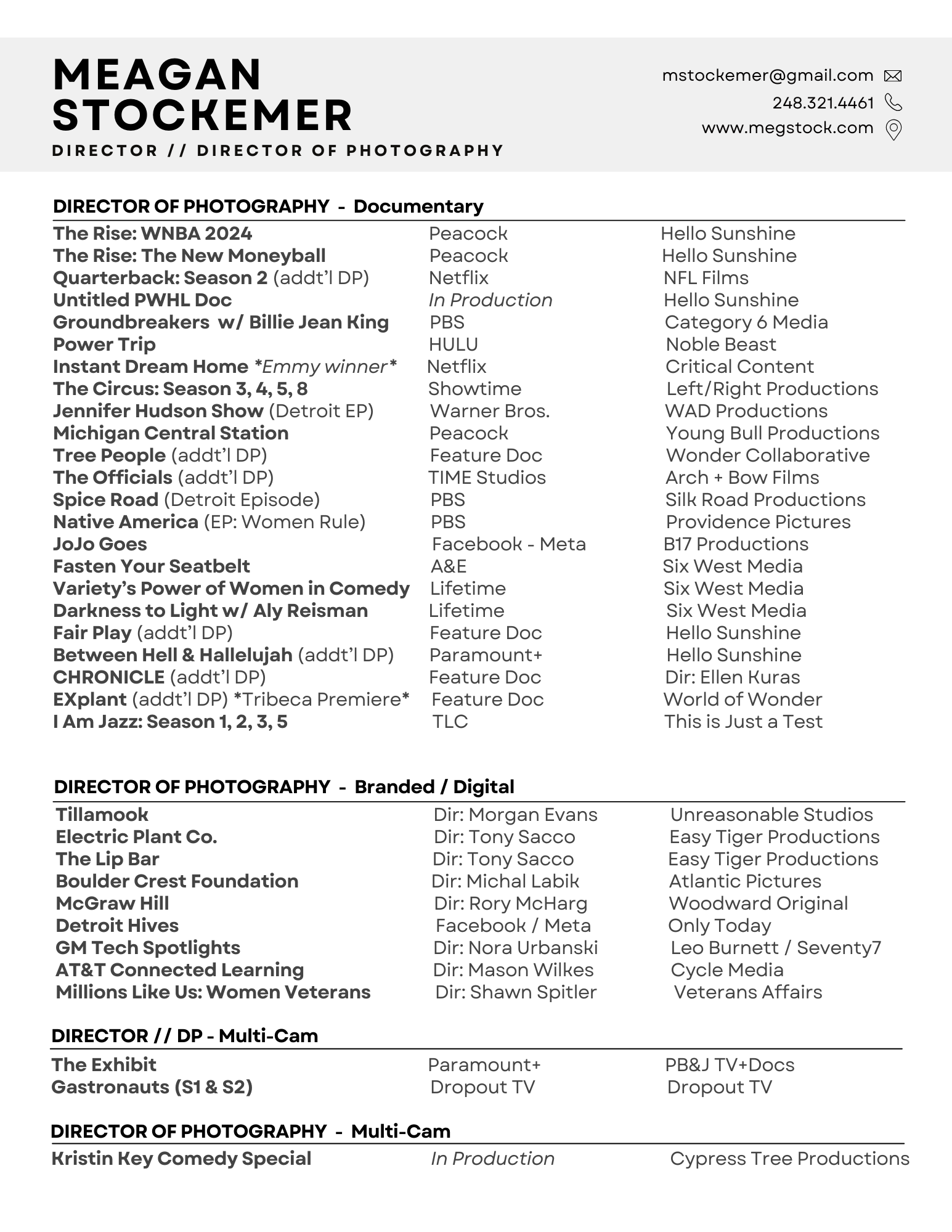 FULL CREDIT LIST & Recommendations available upon request